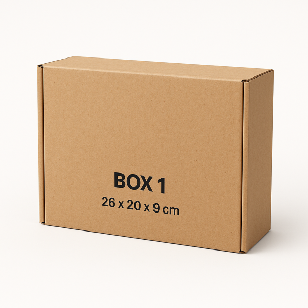 Caja de cartón corrugado sencillo con tapas normales e impresión oficial EnvíoExpress. Diseñada para brindar protección, ligereza y presentación profesional en cada envío. Sus medidas interiores (26 cm largo x 20 cm ancho x 9 cm alto) la hacen ideal para artículos pequeños y medianos como ropa, accesorios, cosméticos o documentos.